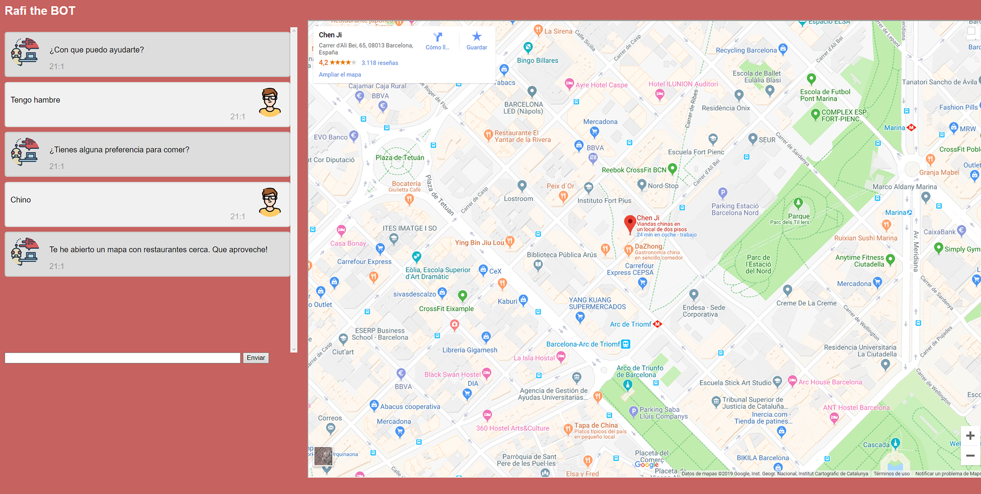 Personal assistant developed as a web application using mainly JavaScript. It was developed for the subject Knowledge Based Systems. For its implementation, different APIs from third parties were used and dynamic conversation topics were included. In a second iteration, DialogFlow was added to improve the conversational capacity of the bot.